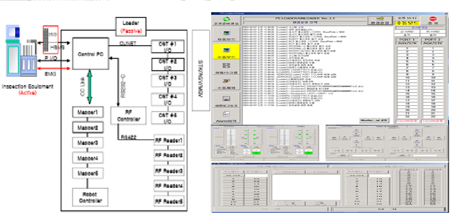 검사장비와 통신을 통해 LCD 를 공정별 검사 Zone 에 로봇을 이용하여 투입하고 검사완료 후 AGV or STK로 적재하는 시스템