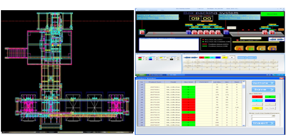 Line 장비이며, 냉장고의 각 Model 별 Box를 선별하여 동일한 Box로 Packing 하는 시스템